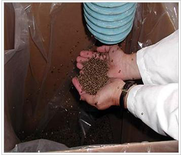 The photo to the left shows the manufacture of the Natural Fiber Reinforced Plastic (NFRP) compounded pellets at commercial production rates. NFRP pellets can be run on all existing molding equipment. A 6,000,000 Lb. pilot plant has been funded to produce these pellets.